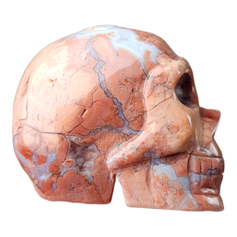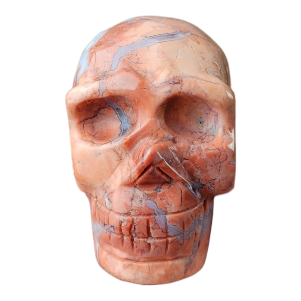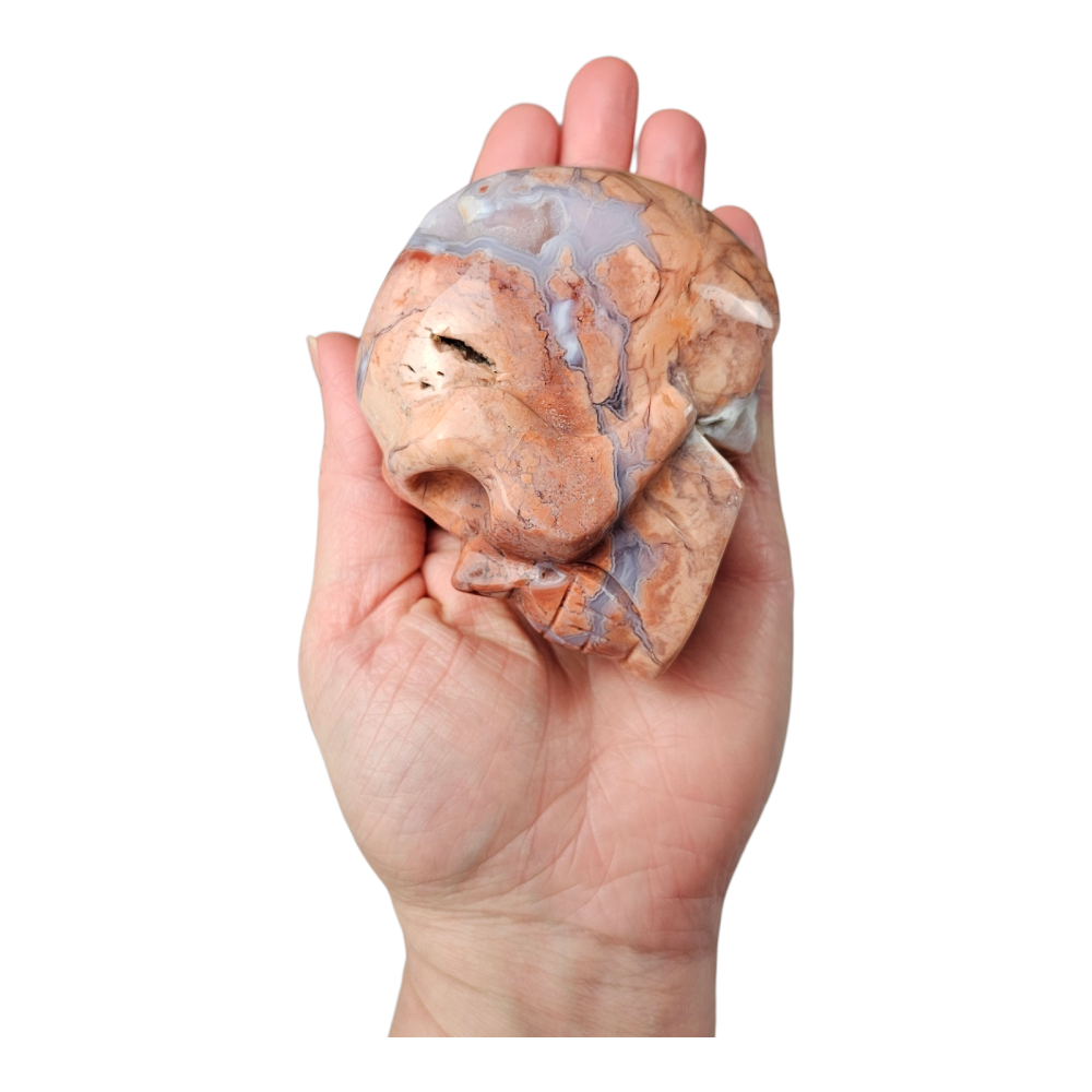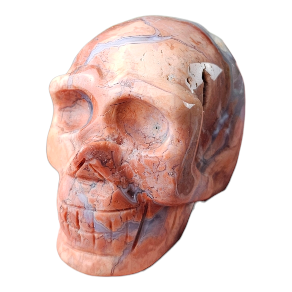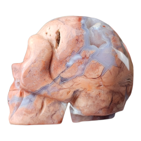 Beau crâne en Agate rose barbe à papa, avec de magnifique effets druse.