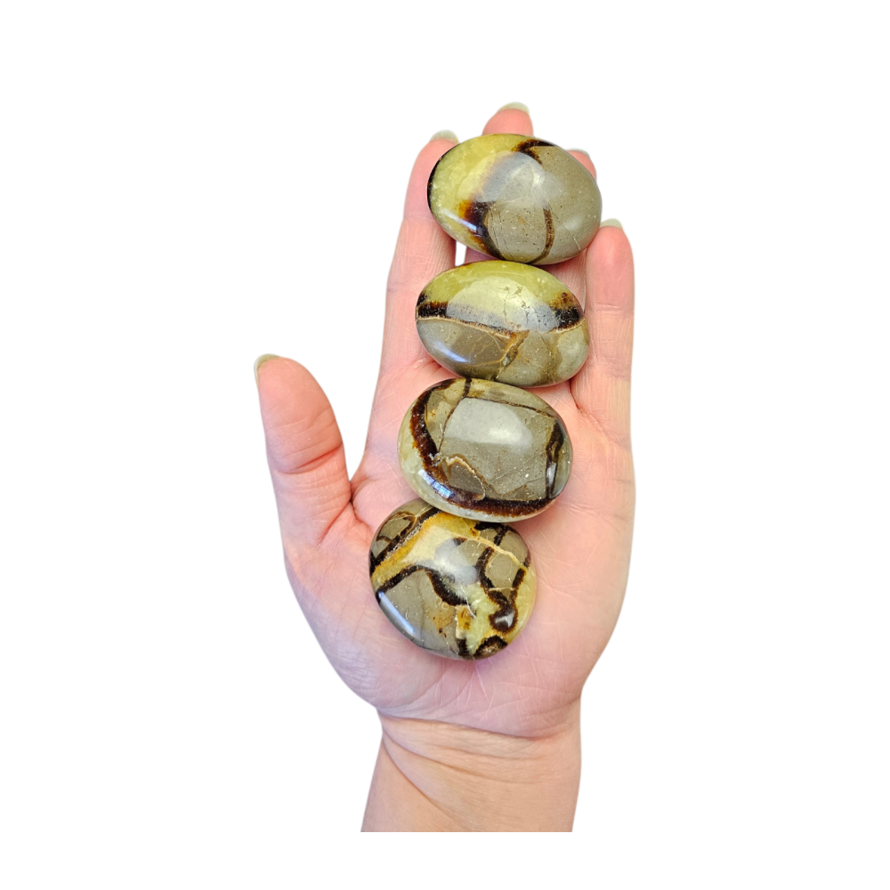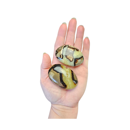 Pierre d’ancrage par excellence, la Septaria aide à se reconnecter à la terre, à renforcer le sentiment de sécurité intérieure et à rester centré face aux situations stressantes.