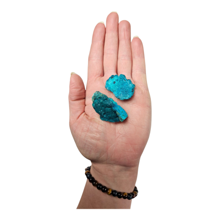 Pierre douce mais puissante, la Chrysocolle favorise l’harmonie du cœur et de la parole. Chaque pièce est unique, révélant des variations naturelles parfois mêlées de malachite ou d’azurite selon sa formation.