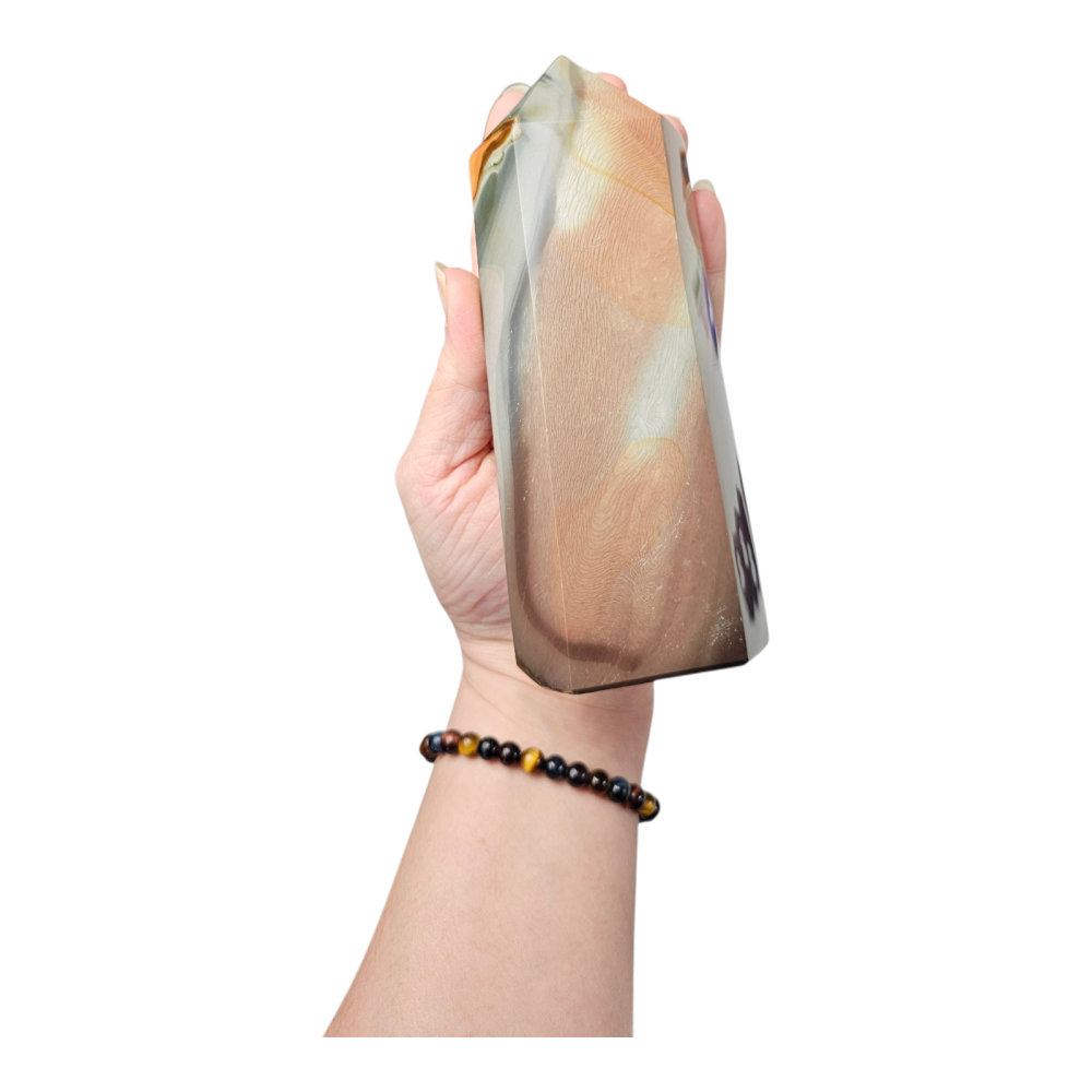 Cette tour en Jaspe polychrome de 904 grammes et 16 cm de hauteur est une pièce remarquable, idéale pour diffuser une énergie stable et harmonieuse dans un espace. Le Jaspe polychrome, reconnu en lithothérapie pour ses vertus d’ancrage, de vitalité et d’équilibre émotionnel, est ici sublimé sous forme de tour, symbole d’élévation et de circulation énergétique.