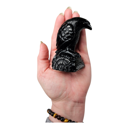 Ce corbeau sculpté en Obsidienne noire de 214 grammes et 8,5 cm de hauteur est une pièce à forte symbolique, associant la puissance du corbeau à l’énergie profonde de l’obsidienne.