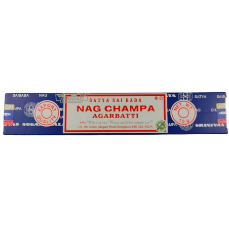Le mélange du Nag Champa contient de nombreuses plantes et bois aromatiques, notamment la fleur jaune d’un arbre de l’Himalaya, le Michelia Champaka, qui lui procure son parfum si caractéristique. L'encens Nag Champa aide à la relaxation et au développement. Cet encens est traditionnellement utilisé en Inde lors des rituels d’offrande à Ganesh