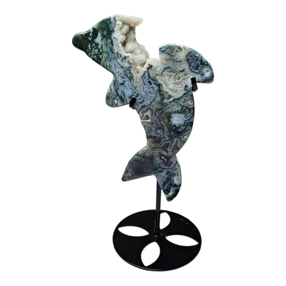 Dauphin Agate mousse 30 cm de haut